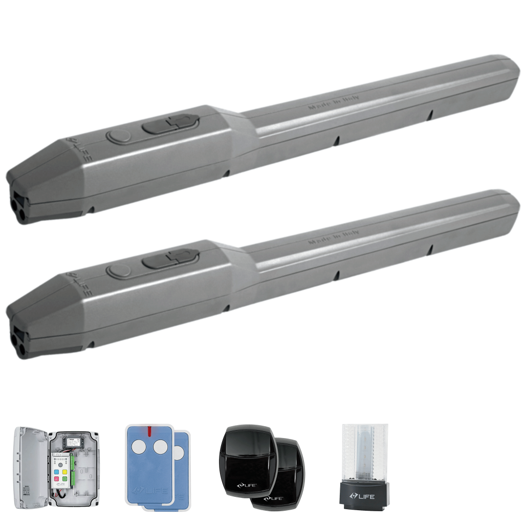 Kitul Life OPTIMO 5 este un sistem complet de automatizare liniară pentru porti batante mari, alimentat la 230 V și proiectat să funcționeze impecabil în condiții rezidențiale sau comerciale.