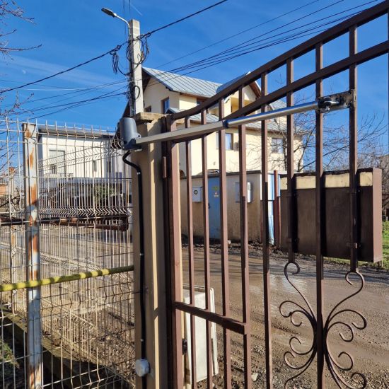 Instalarea profesională presupune montaj mecanic al actuatoarelor pe stâlpi și canaturi, instalarea unității de comandă, conectarea la alimentare, setarea cursei automate, programarea telecomenzilor și testarea sistemelor de siguranță.